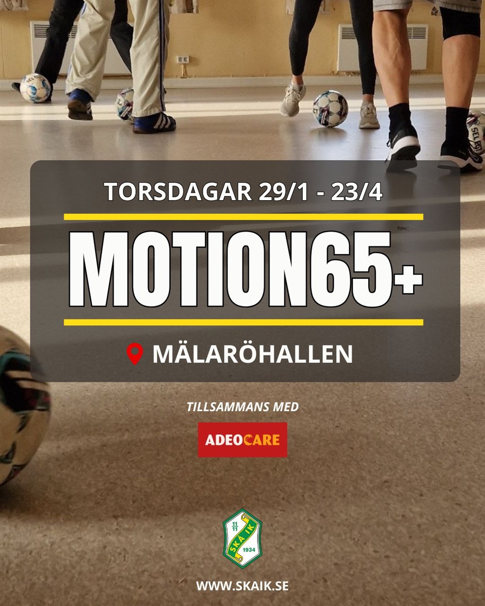 Både nya och gamla deltagare i Skå IK Motion65+ välkomnas till inomhusträning i Mälaröhallen med start den 29 januari 2026.